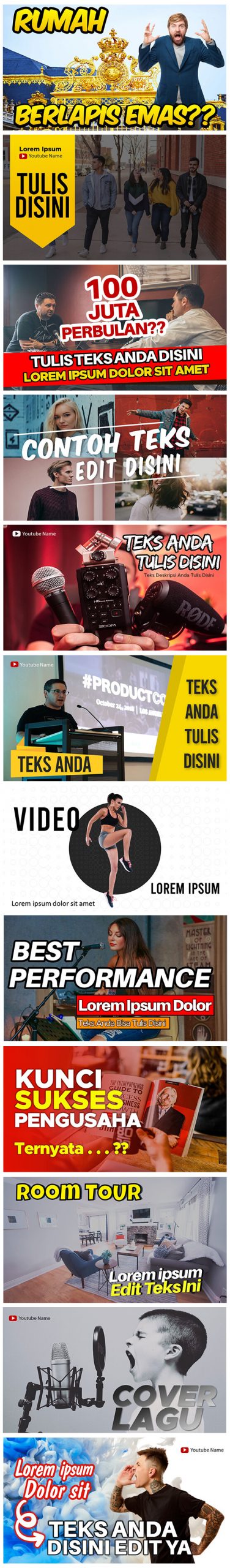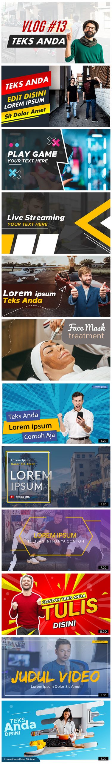 Kumpulan template desain thumbnail Youtube untuk memudahkan Anda membuat thumbnail youtube dengan cepat. Templatye dalam format PPT yang bisa diedit hanya dengan menggunakan Power Point saja.