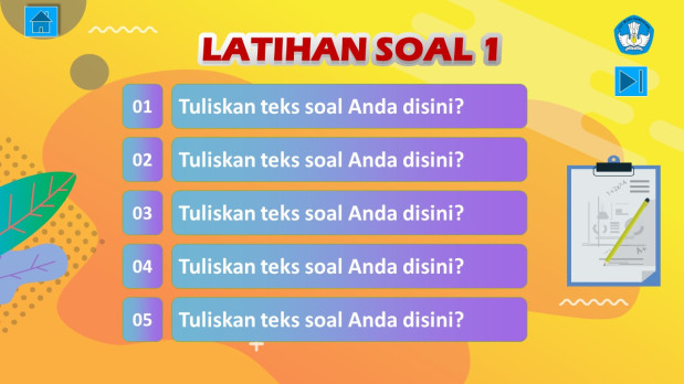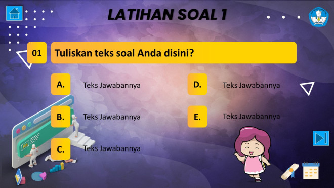 PPT INTERAKTIF berisi Kumpulan Aset Desain Template Media Pembelajaran Interaktif untuk berbagai keperluan mengajar online maupun offline yang nantinya bisa langsung di convert menjadi video mp4. seperti Daring Luring dan keperluan lainnya. Semua Desainnya dalam format ppt yang bisa diedit dengan mudah dalam hitungan menit menggunakan Power Point saja.