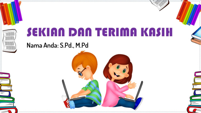 Slidenya Bagus dan Banyak Ragamnya, karakter guru, siswa dan semua aset ornamen templatenya jg bisa diganti warnanya sesuai keingingan kita. Bonus-Bonusnya jg Keren luarbiasa. Pelayanan Konsultasinya memuaskan.makasih banyak Pak Hendri Nurdiansyah, S.Pd.