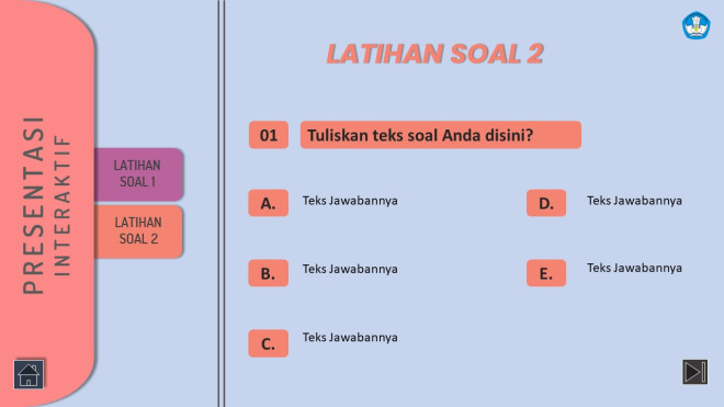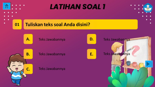 PPT INTERAKTIF berisi Kumpulan Aset Desain Template Media Pembelajaran Interaktif untuk berbagai keperluan mengajar online maupun offline yang nantinya bisa langsung di convert menjadi video mp4. seperti Daring Luring dan keperluan lainnya. Semua Desainnya dalam format ppt yang bisa diedit dengan mudah dalam hitungan menit menggunakan Power Point saja.