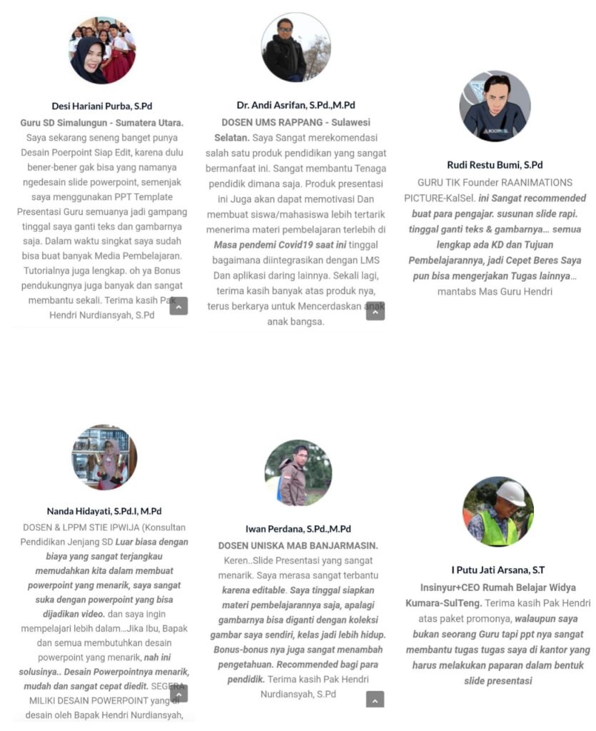Slidenya Bagus dan Banyak Ragamnya, karakter guru, siswa dan semua aset ornamen templatenya jg bisa diganti warnanya sesuai keingingan kita. Bonus-Bonusnya jg Keren luarbiasa. Pelayanan Konsultasinya memuaskan.makasih banyak Pak Hendri Nurdiansyah, S.Pd.